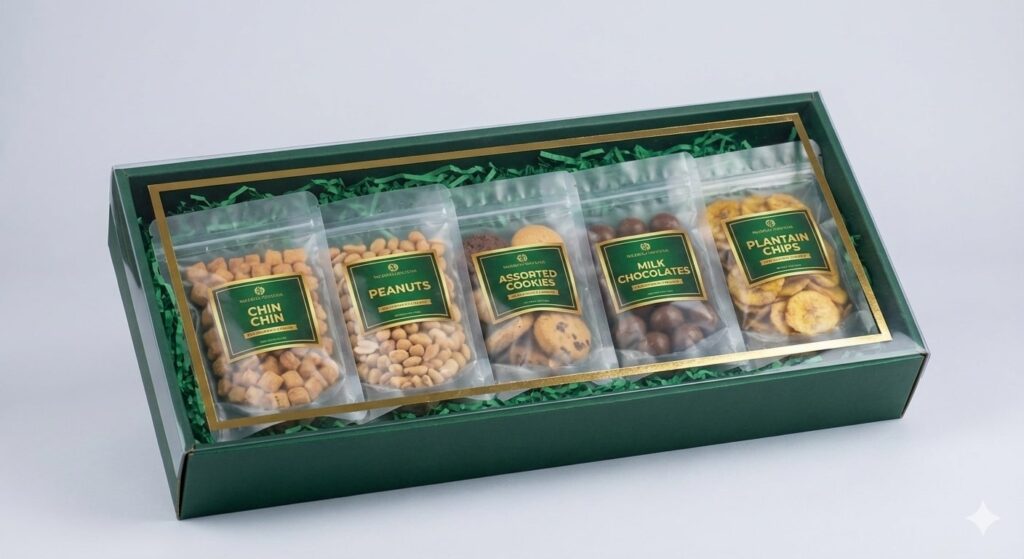 Mercified Hampers & Gift Baskets, we focus on neat arrangement, quality items, and elegant green & gold packaging that instantly elevates your gift.